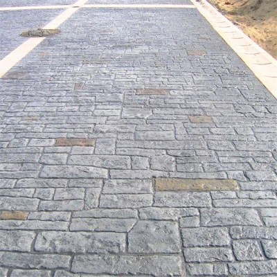 5、使用藝術(shù)地坪模具對地坪面層進(jìn)行紋理處理。藝術(shù)地坪模具應(yīng)配套使用,首先確定好紋理的分布方向,選好一塊模具放置的位置和角度,然后其它的模具依次緊貼一塊模具放置。彩色混凝土藝術(shù)地坪壓模采用壓模,壓模應(yīng)由技術(shù)較好的人員進(jìn)行作業(yè)以保證壓紋深度一致和模具放置的準(zhǔn)確性。