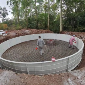 4、產(chǎn)品重量輕,便于運輸。產(chǎn)品整體成形,無需拼裝,安裝快捷。  池體內(nèi)表面采用膠衣樹脂,保證了優(yōu)良可靠的密封性,具有強度高、重量輕、耐腐蝕、耐老化、防滲漏的特點.并分別設(shè)有出氣孔、進、出料口和水壓間。其池壁厚度為10mm,拉伸強度為108MPa,彎曲強度147MPa,具有很高的機械強度和延伸率,大大超過了水