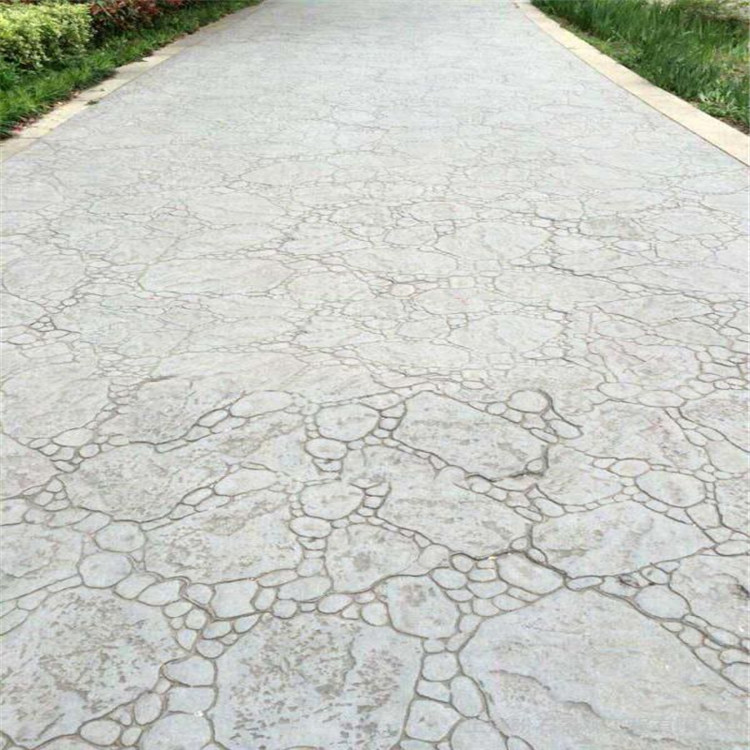 5、使用藝術(shù)地坪模具對(duì)地坪面層進(jìn)行紋理處理。藝術(shù)地坪模具應(yīng)配套使用,首先確定好紋理的分布方向,選好一塊模具放置的位置和角度,然后其它的模具依次緊貼一塊模具放置。彩色混凝土藝術(shù)地坪壓模采用壓模,壓模應(yīng)由技術(shù)較好的人員進(jìn)行作業(yè)以保證壓紋深度一致和模具放置的準(zhǔn)確性。