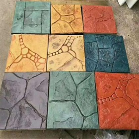 5、使用藝術(shù)地坪模具對(duì)地坪面層進(jìn)行紋理處理。藝術(shù)地坪模具應(yīng)配套使用,首先確定好紋理的分布方向,選好一塊模具放置的位置和角度,然后其它的模具依次緊貼一塊模具放置。彩色混凝土藝術(shù)地坪壓模采用壓模,壓模應(yīng)由技術(shù)較好的人員進(jìn)行作業(yè)以保證壓紋深度一致和模具放置的準(zhǔn)確性。