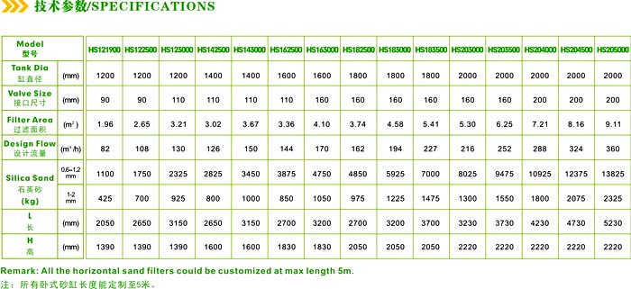 直徑1200mm的濾床高度:0.6m